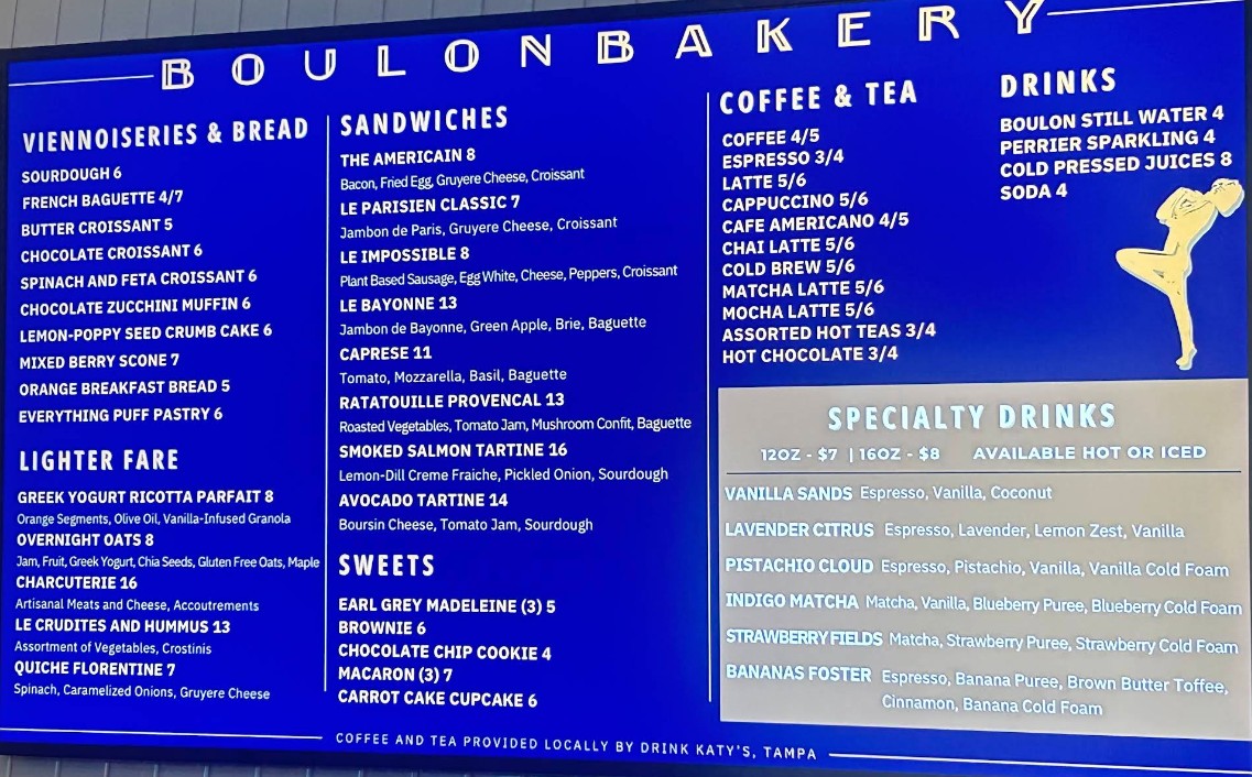 Welcome to the Boulon Brasserie and Bakery Restaurant menu, where French-inspired cuisine meets modern dining in the heart of Tampa. This restaurant is known for its elegant atmosphere and a diverse selection of freshly prepared dishes, including artisan bakery items, classic brunch favorites, gourmet entrees, and handcrafted beverages. The Boulon Brasserie and Bakery Restaurant menu offers something for every taste, from light pastries and breakfast plates to rich main courses and signature specialties. On this page, you can explore the latest menu with updated prices, discover popular dishes, and plan your perfect dining experience before your visit.